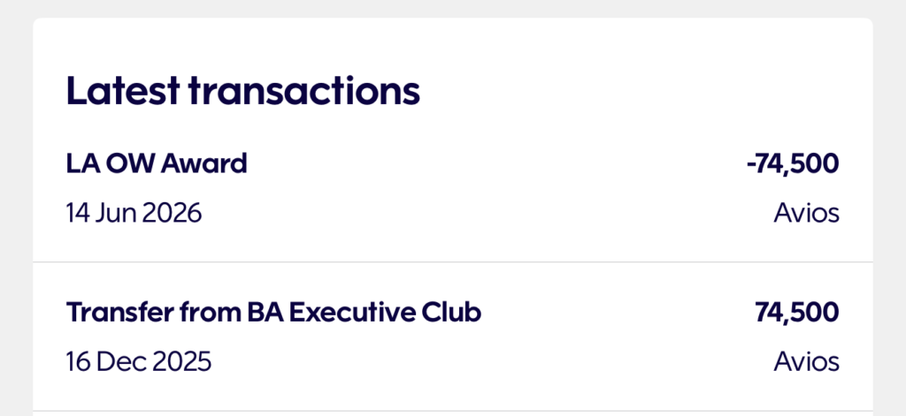 Você precisa ter saldo suficiente (no meu caso, 74.500 Avios). Se você ainda vai transferir/gerar Avios, planeje isso antes — porque disponibilidade em Copa pode sumir em minutos.