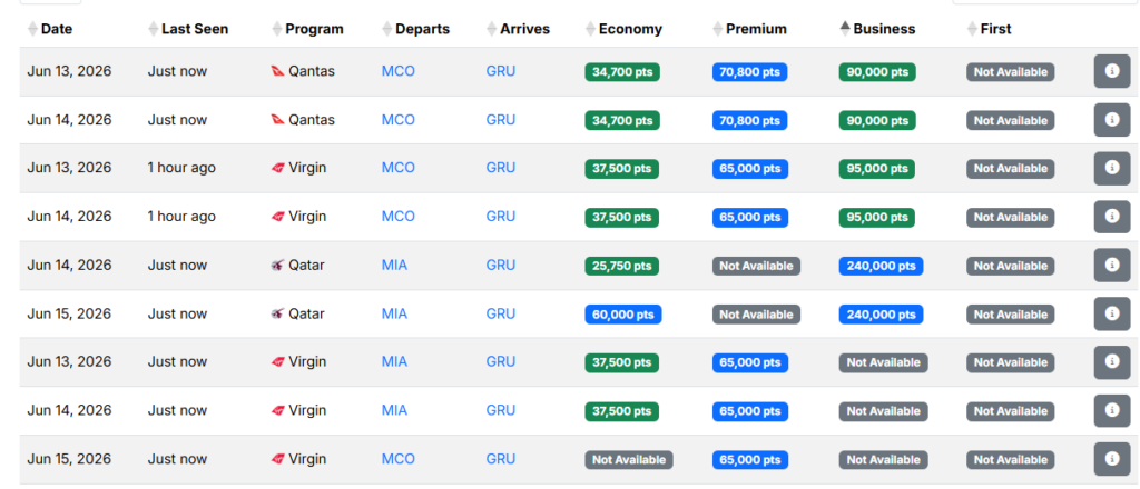 O Seats.aero é ótimo para uma coisa: te apontar onde existe fumaça. Só que fumaça não é fogo garantido. Ele agrega disponibilidade de vários programas, mas isso não significa que: